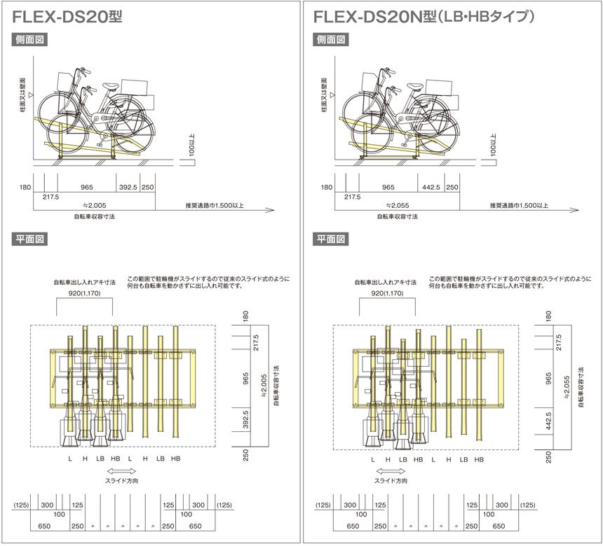 ※駐輪機設置場所の床勾配は、前後方向0.5%以下、左右方向0%でお願い致します。
