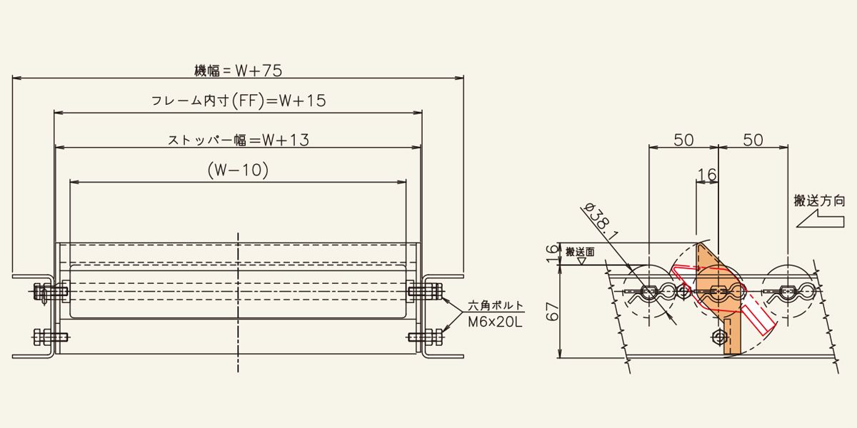 | ストッパー部寸法 | ローラ上面:約16mm |