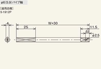 軸の形状(スチール製)※Φ6・Φ8・Φ12は軸長119以下は製作できません。