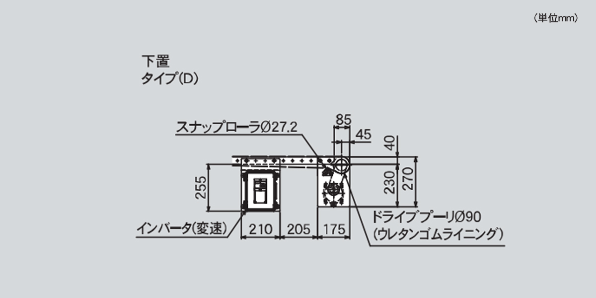 | ベルト幅(BW)/ 機幅(FW) | ・100 / 140 ・150 / 190 ・200 / 240 ・250 / 290 ・300 / 340 ・400 / 440 ・500 / 540 ・600 / 640 |