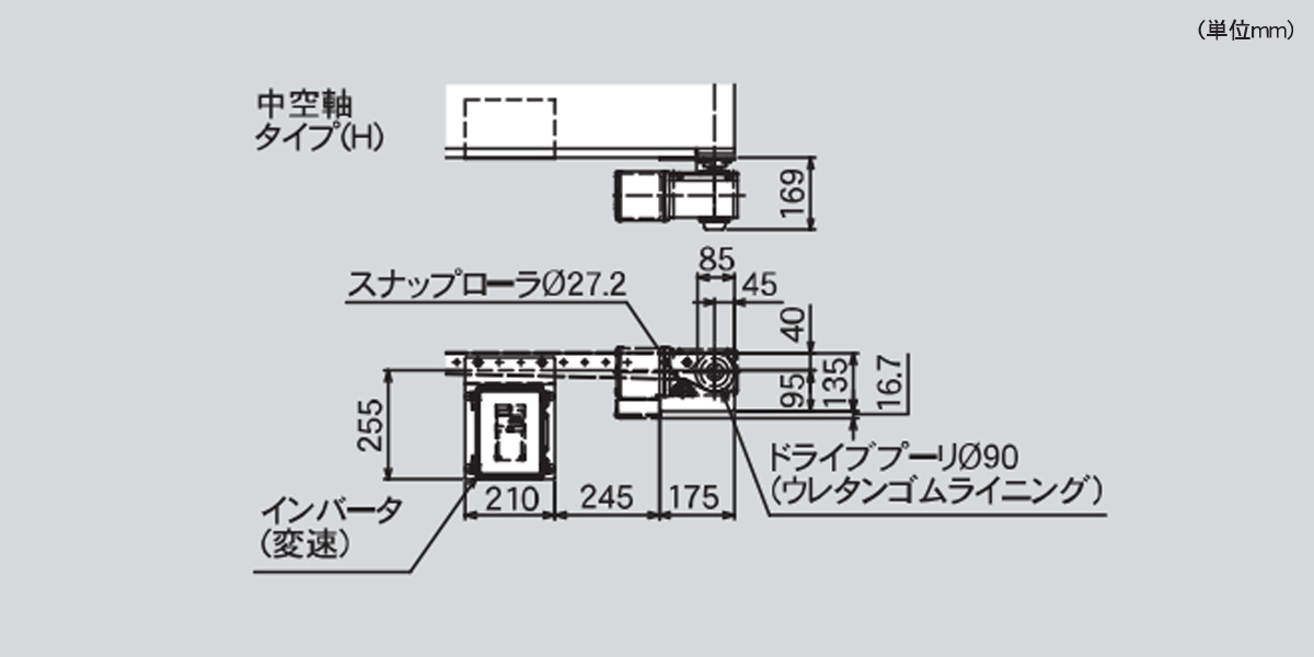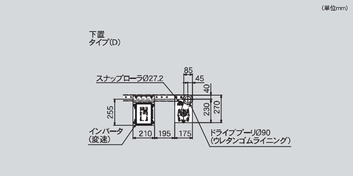 | ベルト幅(BW)/ 機幅(FW) | ・100 / 140 ・150 / 190 ・200 / 240 ・250 / 290 ・300 / 340 ・400 / 440 ・500 / 540 |