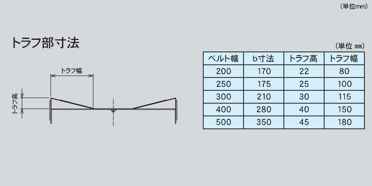| ベルト幅(BW)/ 機幅(FW) | ・200 / 240 ・250 / 290 ・300 / 340 ・400 / 440 ・500 / 540 |