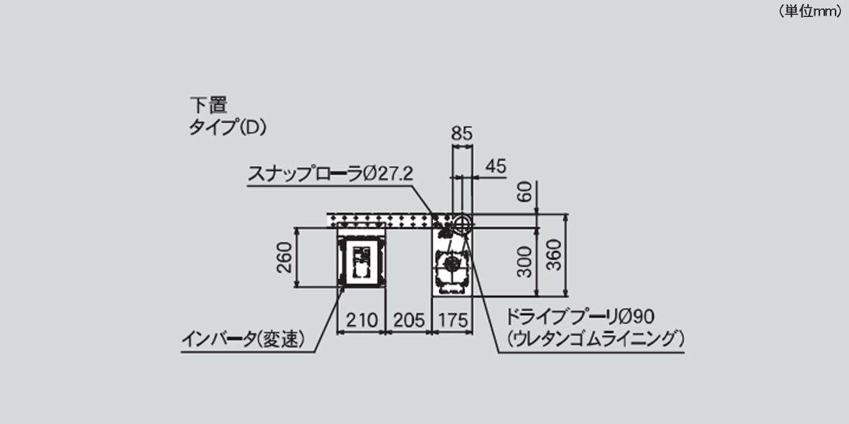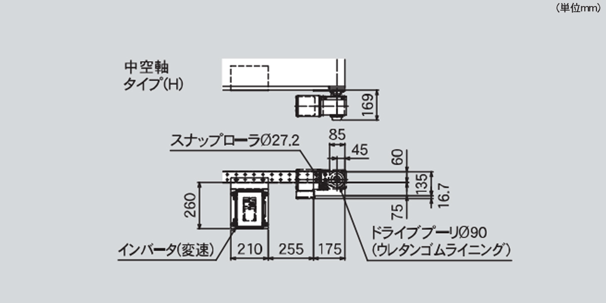 | ベルト幅(BW)/ 機幅(FW) | ・300 / 340 ・400 / 440 ・500 / 540 ・600 / 640 ・700 / 740 ・800 / 840 |