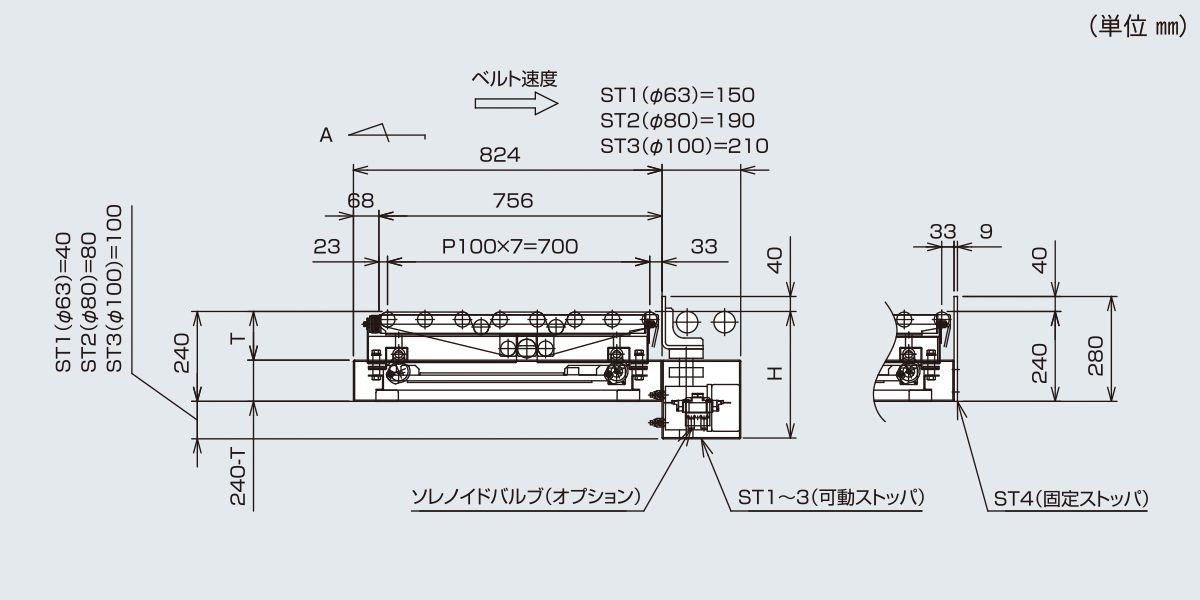 | ストッパー | 可動ストッパー(ST1:Φ63、ST2:Φ80、ST3:Φ100) 固定ストッパー(ST4) |