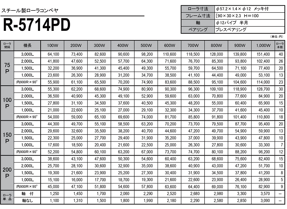 スチール製ローラコンベヤ R-5714PD 価格表