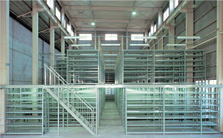 工場や倉庫の天井は高く、天井空間の利用効率は意外に低いものです。そんな時には、ラックの上に床を張り、積層化するとスペースのムダはなくなり、収納力は倍増します。積層ラックが自立構造体ですから、解体、移設が簡単にでき、目的に合わせたシステムを短期間に組み替えられます。ラックは、重量ラック、中量ラック、軽量ラックなど使用目的に応じて選べます。階段やリフター、コンベヤ、バーチレーターなども現場の作業状況、レイアウトに合わせ、最も適した場所に設置することができます。