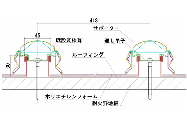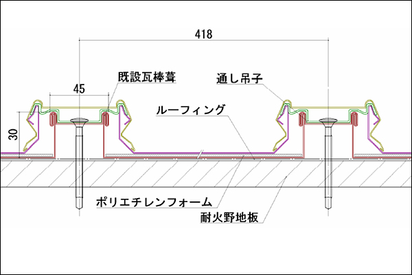 既存瓦棒葺の改修工事として、重ね葺きする事ができます。
