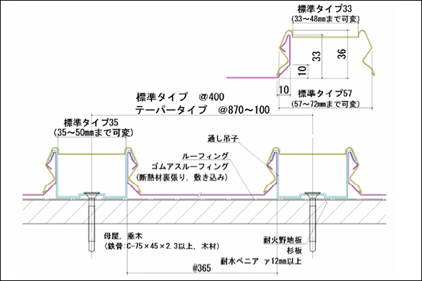 ※母屋構造の場合、母屋間隔は606mmでお願いします。