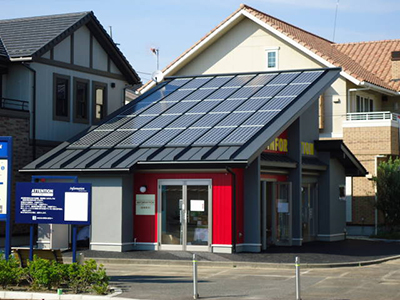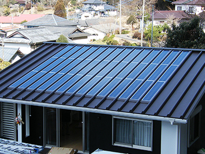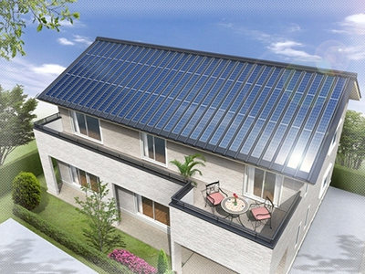 従来の太陽光発電システムのモジュール取付架台が不要になり、デザインを損なうことなくシンプルな屋根に仕上がります。