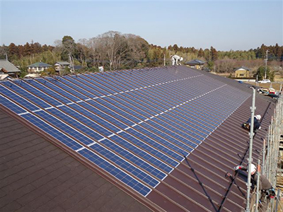 このシステムは、金属屋根瓦棒葺面材の中にオリジナル寸法の太陽光発電モジュールを嵌合式にて組込む工法です。